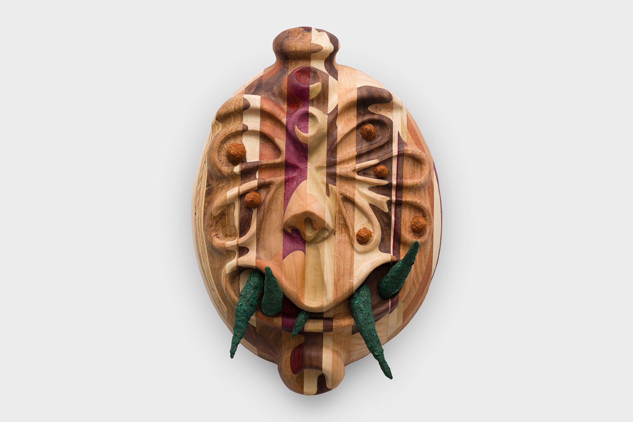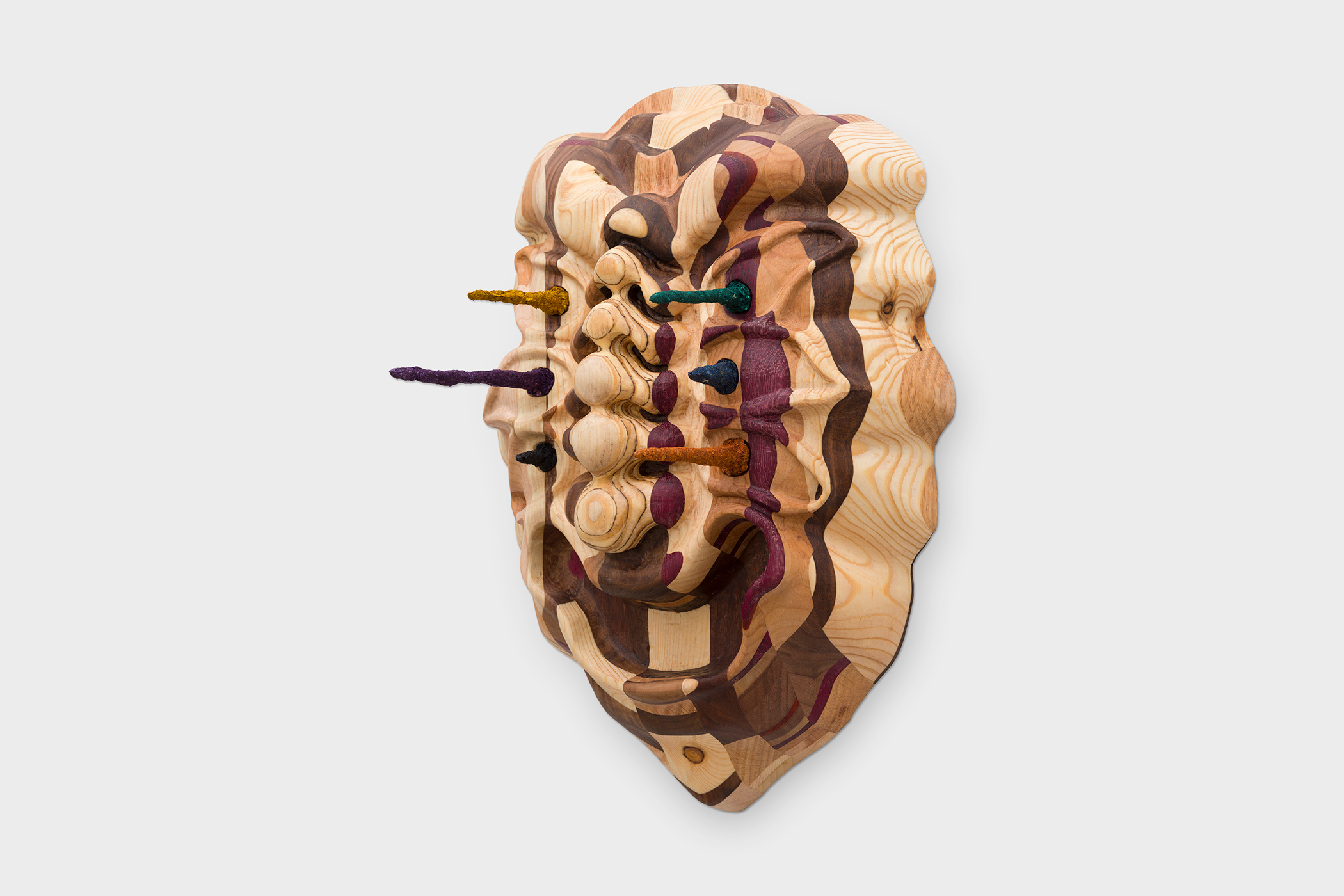 This series of mask sculptures is inspired by the collective nature of traditional Korean masks in folk plays. I revisit these masks by crafting them from wood scraps and sawdust left over from products I made for others as a professional woodworker. The characters these masks represent are lower-class laborers who reveal the hypocrisy of the aristocratic class by mocking them. These trickster masks hide and protect the identities of the people behind them while offering space for social criticism. By turning the leftovers of my labor into these masks, I shed light on the beauty, power, and potential of everyday labor, often neglected in a highly capitalized and individualized society.