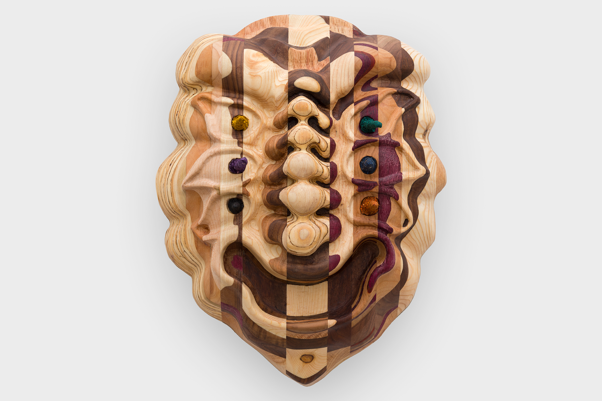 Four Eyes, 2022, Hardwood and plywood scraps,10.5 (H) x 10 (W) x 3.5 (D) inches